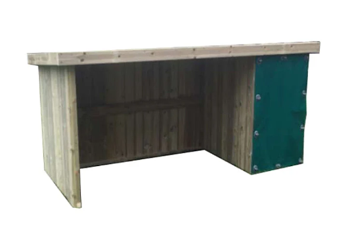 A large, outdoor storage solution for all schools, nurseries, and pre-schools. Complete with a heavy-duty PVC cover that rolls up and down for easy access to store smaller items, it is a great necessity for any playground! Shelving situated to the right is handy for storing helmets, knee/shin pads, and various play resources. Made from FSC Pressure Treated Redwood Timber. Delivered fully assembled.
