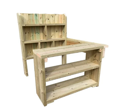 The Role Play Corner offers a variety of roleplay situations – it can be transformed into a shop, kitchen, café, pharmacy, or whatever your child desires. watch your little ones build important communication skills as they chat to pretend customers whilst selling their goods. Our Role Play Corner has been designed to help enhance your child’s literacy and numerical skills as they play. Made from FSC Pressure Treated Redwood Timber, this educational resource is robust and designed to last.