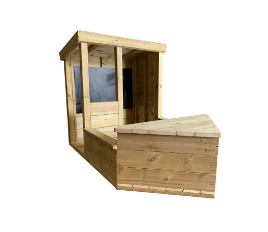 A-hoy! Jump aboard the Children’s wooden  Boat  3– A brilliant open-ended product for early years development. Primary and nursery pupils will love practising their drawing skills on the large chalkboard, whilst out at sea. Important creative skills and innovative thoughts will begin to build as children learn through play. The Tug Boats flat base will lend itself to any playground or residential garden. Made from FSC Pressure Treated Redwood Timber. Assembly required.